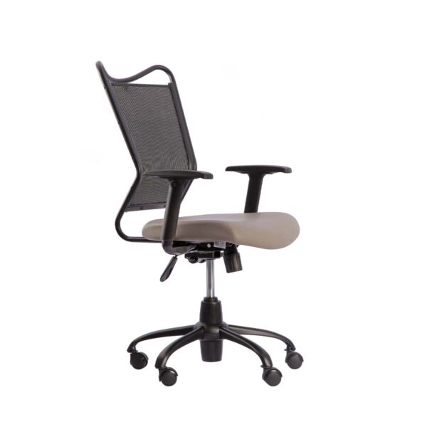 پشتی صندلی از جنس پارچه مش ساخته شده که با حفظ جریان هوا، راحتی و تهویه مناسب را فراهم میسازد.
